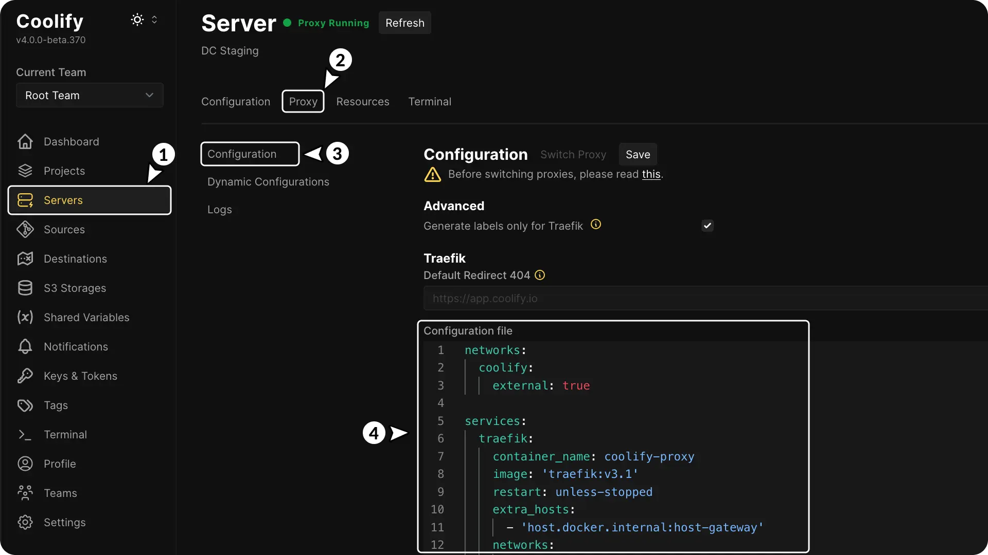 - '/data/coolify/proxy:/traefik' # Traefik config volume.