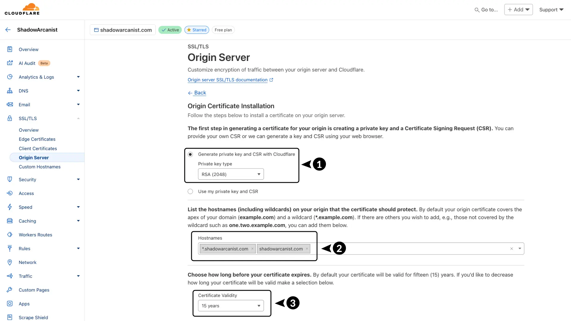 traefik.http.services.shadowarcanist.loadbalancer.server.port=80Now you’re done! Your server is set up to use the Cloudflare Origin Certificate, and all traffic is secured via TLS.